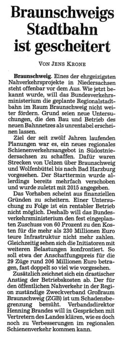 Regio-Stadtbahn - Braunschweig Wolfsburger Nachrichten, 3.12.2010 |